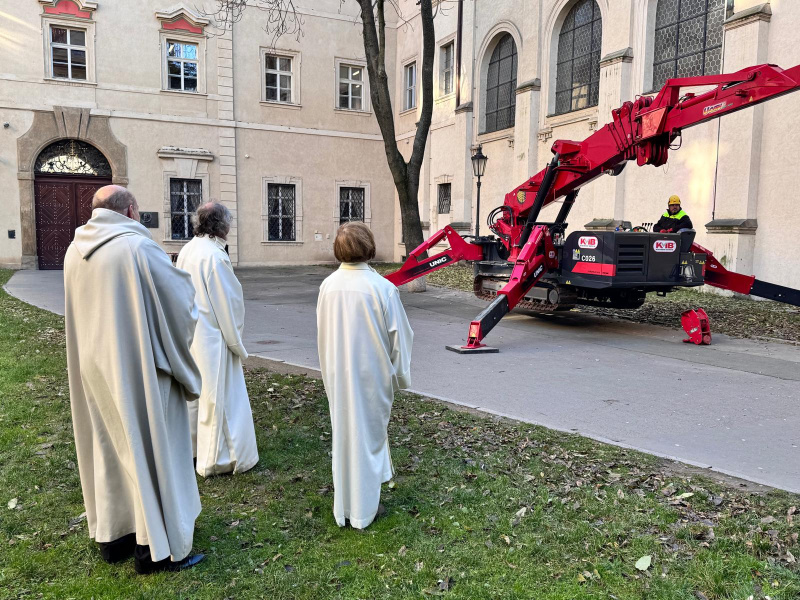 Na tuto historickou chvíli jsme hrdí – KMB STAVEBNÍ SERVIS s.r.o. zajišťoval instalaci zvonu do věže kostela minijeřábem UNIC-1006 s dosahem 31 metrů. Díky precizní práci našeho týmu a zkušenostem s manipulací těžkých břemen proběhla akce hladce a bezpečně. Za jeřábnické práce děkujeme Martinu Beníčkovi a jeho kolegovi Jiřímu Fáberovi, kteří bravurně zvládli náročné podmínky v centru Prahy.