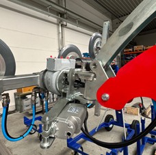 Manipulátor je pouze 940 mm široký, ideální pro nájezd do dodávky po 1 m široké rampě (na přání). Díky dálkovému kabelovému ovládání neztrácíte kontakt se sklem, u kterého můžete stát. Elektrický pohon lze nastavit do režimu mikropojezdu. Minete-li střed rámu, pomůže vám s usazením skla elektrický posun ramene vpravo a vlevo (4 cm/4 cm).