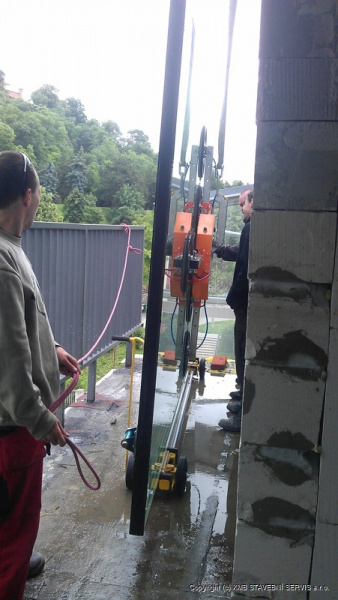 Stabilitu převáženého skla na vozíku zajišťují kompaktní přísavky, které jsou výškově nastavitelné na pomocných opěrných tyčích do výšky 1950 mm. Velkou výhodou transportního stojanu na sklo je snadné a rychlé rozložení a převoz i v osobním autě.